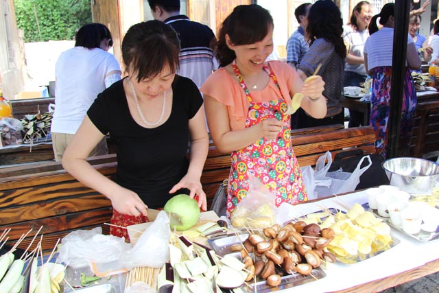 在一处山坳幽僻的地方,大家先集中在一起开展了脑筋急转弯、猜谜语活动,在聪明的会员面前,工会准备的题目很快被解开了谜底,特别是关于学校招生方面的知识问题,受到大家的“追捧”。随后,让所有会员向往的烧烤活动正式开始,以工会小组为单位,领料、洗菜、分切、穿签、上炉,大家相互分工,忙的不亦乐乎,不少“深藏不露”的会员展现了非常专业的厨艺。大家品尝着完全自己加工、自己烤制的美味,每个人的脸上都充满了快乐。期间,工会准备了背景音乐和卡拉OK演唱,不少会员献唱助兴,一展风采。