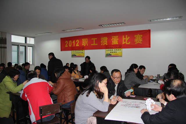 为丰富教职工的业余文化生活,增进彼此友谊,2012年12月3日,校工会利用业余时间在学校实训楼培训教室举办2012职工掼蛋比赛,共有45对选手参赛,比赛预计12月13日结束。(工会2012.12.3)