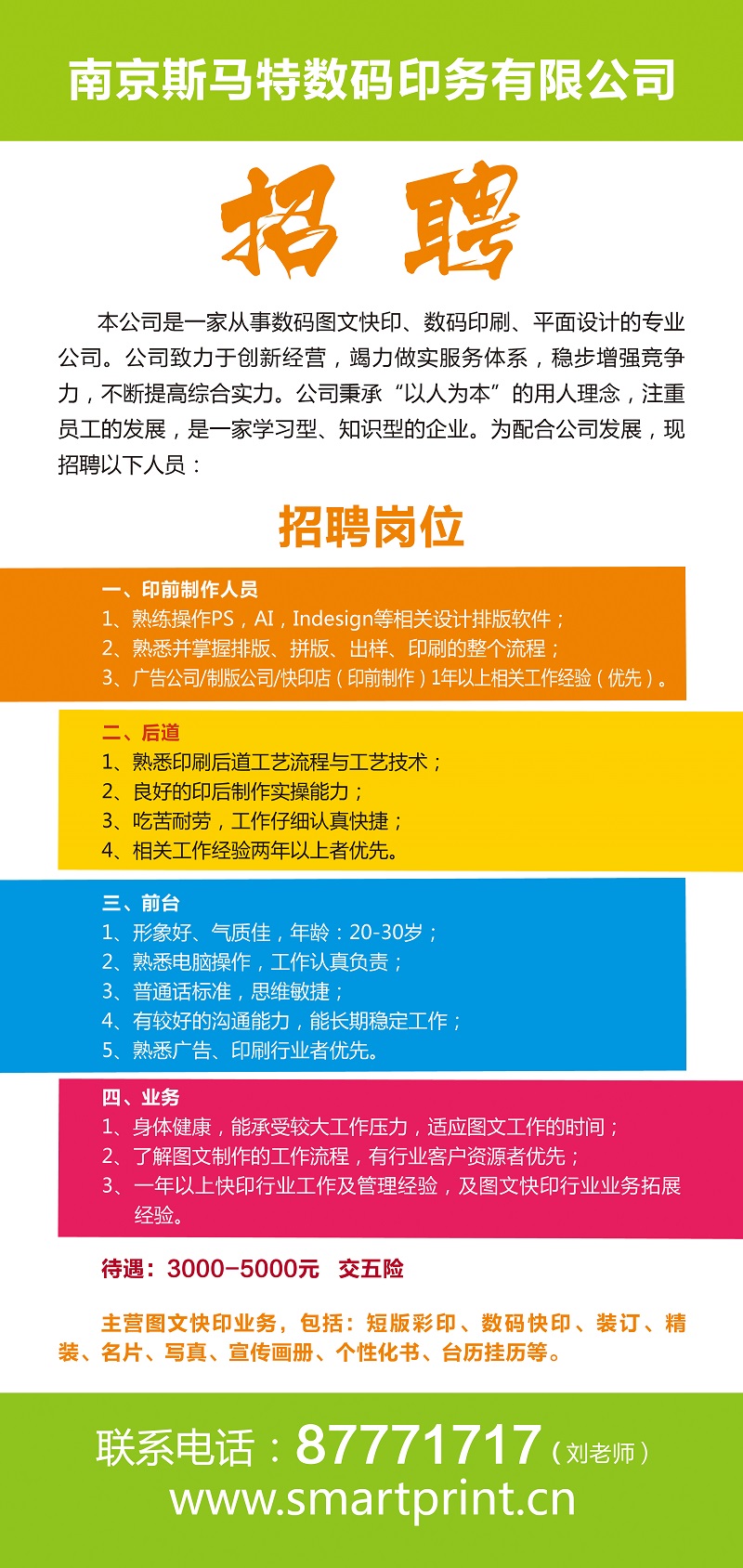 2016年南京斯马特印务招聘公告(2016-05-16)