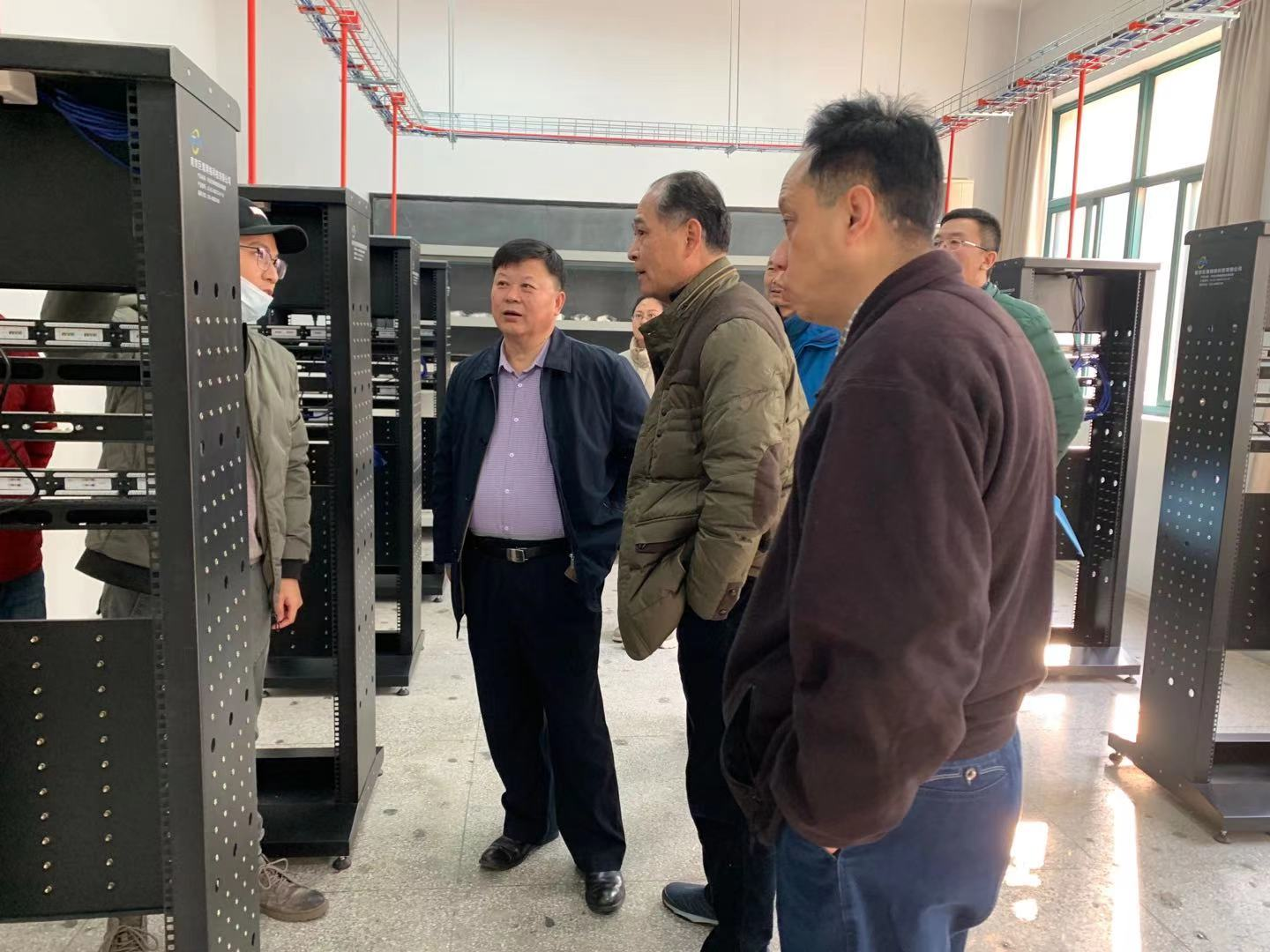 在综合布线实训室验收工作中,学校领导参观了实训室的整体布局,并对将来的工作给予了指导。