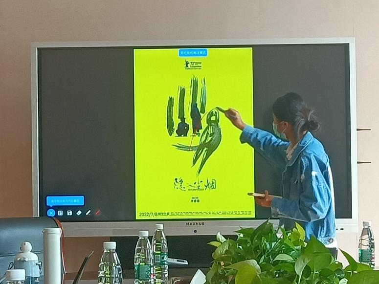 接下来,同学们分别从海报的主题、整体布局、颜色搭配、表达内容、设计元素等方面分享了自己喜欢的创意海报。一张张海报,是一个个故事,一屏一页,展现了同学们对海报的理解。